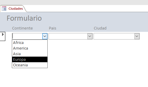 Ya que sólo voy a usar una columna, pero podían perfectamente ser 2, una para el idContinente y otra para el continente y ocultar la del Id, aunque seguiría siendo la columna dependiente