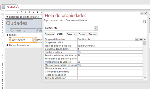 En un formulario, da igual si tiene origen de registros como si es independiente, creo los combinados y el origen de la fila lo dejo en blanco