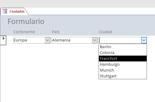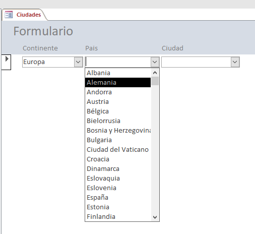 Elijo Alemania y cuando pongo el cursor en el combinado Ciudad