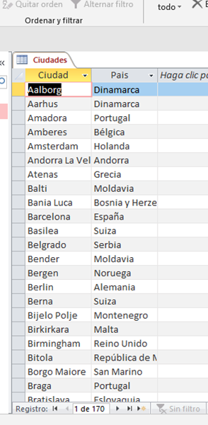 No te preocupes, no la rellené a mano, para eso está el update y por último tengo la tabla Ciudades, relacionada con la anterior por Pais