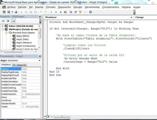 Tengo un excel en el cual en la celda d12 digito un código de cliente y este mediante una macro hace que la tabla filtre la informacion relacionada a este código. El problema radica cuando ingreso un código que no existe en mi base de datos enseguida toda la informacion de todos los códigos se visualiza en la misma tabla dinámica. Lo que se necesita es que si no existe un código simplemente se muestre un mensaje indicando que dicho código no existe en la bd y también que la tabla dinámica se muestre vacía o en blanco. ¿Por favor podrías ayudarme con este caso?