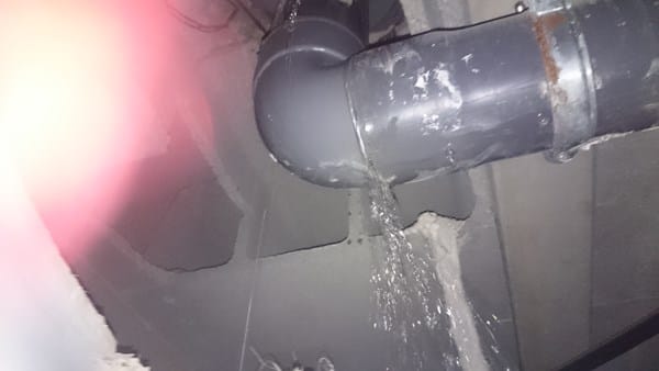 En una ocasión comenzó a salir agua por la parte más baja del colector de las aguas que son recogidas del water, de la ducha, lavavos, etc.. El agua salía por la punto final de ese recorrido situado en el sótano de la casa de tres dos plantas más sótano, que es un codo, y da la sensación que es la unión del codo el origen de la salida del agua, pero fijándose bien el agua viene "deslizándose" a lo largo del tubo, y es en el ese codo donde "se despega" el agua del tubo "gordo" de PVC y forma un chorro que es el que finalmente cae al suelo. Este chorro es de un caudal significativo, en unos pocos minutos se recogen como unos 40 a 50 litros de agua. Esta cantidad la he medido más o menos en una ocasión en la que llovió de forma continua y al recoger el agua de lluvia ese PVC de una terraza pude comprobarlo. Lo curioso es que tapé el sifon de la terraza y seguía saliendo agua.