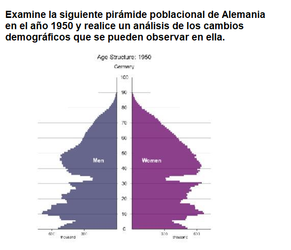 Enunciado -> Examine la siguiente pirámide poblacional de Alemania en el año 1950 y realice un análisis delos cambios...