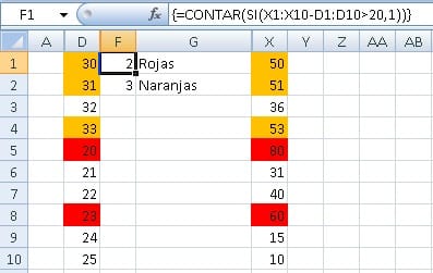 Solo necesito contar el naranja y el rojo y pongamos en las siguientes celdas