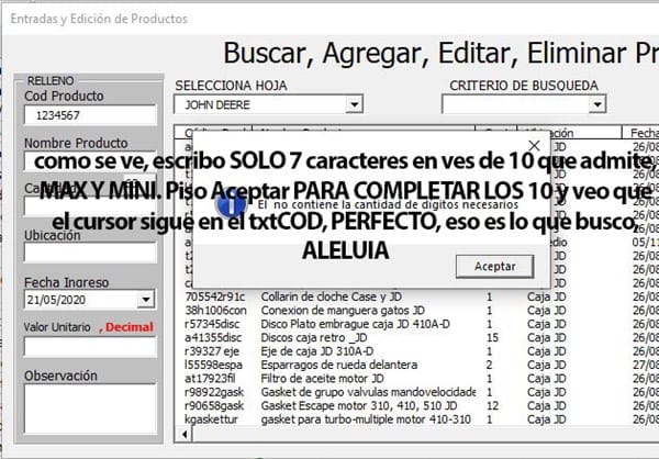 Resumiendo: El txtCod esta con macro para 10 caracteres MAX y 10 MIN