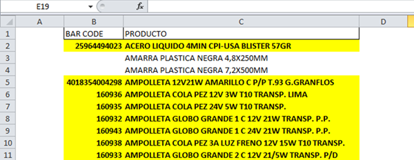 La hoja2, tiene la misma forma, pero solo el nombre de productos.