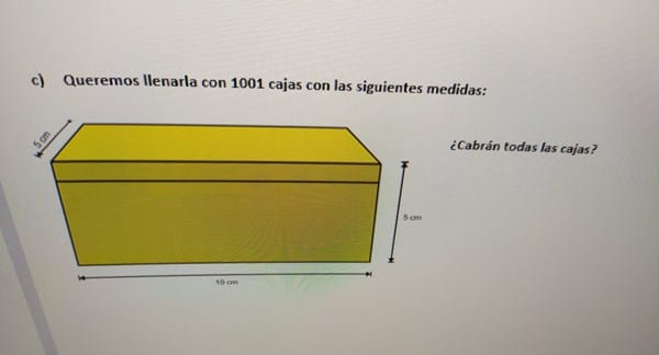 - ¿Qué espacio ocupa nuestra caja? Queremos llenarla con 1001 cajas con las siguientes medidas: