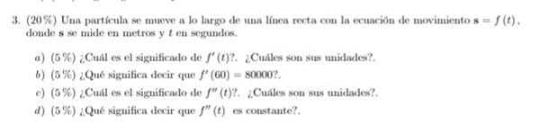 Una partícula se mueve a lo largo de una línea recta con la ecuación de movimiento s=f(t)
