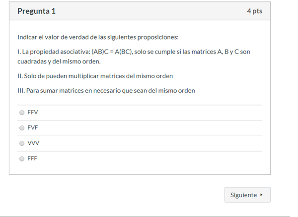 I. La propiedad asociativa: (AB)C = A(BC), solo se cumple si las matrices A, B y C son cuadradas y del mismo orden.