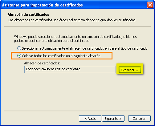 En la ventana que aparece, en la pestaña “Entidades de certificación raíz de confianza”, que es donde indicaste que querías guardar el certificado, verás que efectivamente se encuentra allí.