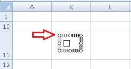 En el siguiente ejemplo la casilla está fuera de la celda K11. Parece que la imagen está dentro de la celda K11, pero la esquina superior izquierda realmente está en la celda K10