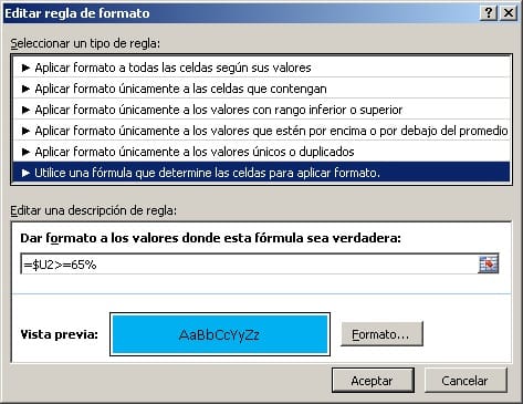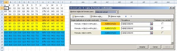 Formato Condicional aplicado a un rango fila según el valor de una celda en excel