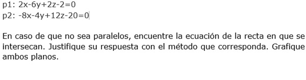 Otra forma de hallar la recta entre dos planos es intentar resolver el sistema que generan los planos
