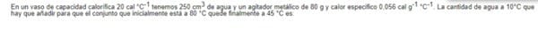 Ce vaso = 20 cal/°C ............................Ce....Agitador = 80 x 0.056 = 4.48 cal/°C