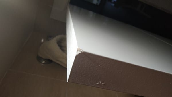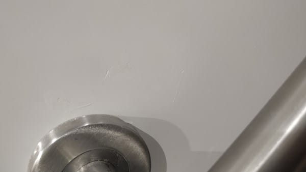Al ir al limpiar las puertas, me he encontrado con detalles como los que veis en las fotos, le he dicho sólo algunos de ellos y se me puso de muy malas maneras, diciéndome que encima tenía el valor de exigirle uno nuevo después de lo que había pagado. Por otro lado, me dijo que le enviara una foto de la puerta de frente(no del detalle) Y me envió una que también había hecho él, tratando así de demostrar que no hay ningún fallo, cuando evidentemente si haces una foto de una puerta de lejos, no se va a ver todo esto.