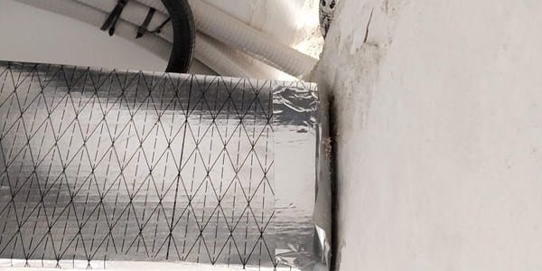 Me han dicho que esto es normal, y que en el caso del conducto de fibra NETO (con tejido por dentro), no se pueden encintar con cinta de aluminio porque generaría ruido y no se pegaría correctamente,