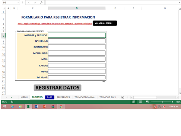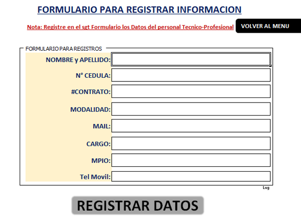 Prosigo .. pero ressulta este nuevo contratista tiene un cargo,, que puede ser técnico o profesional o referente un otro,, entonces la idea es que en el mismo formulario de registro, guarde tanto en la base general y en la hoja (técnicos) . según sea su cargo