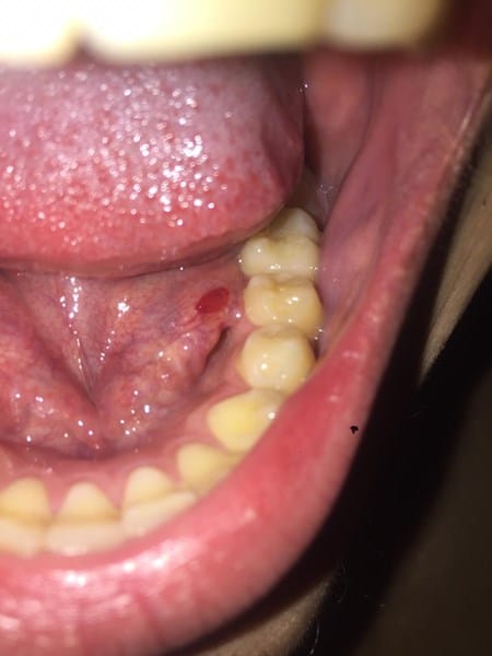 Tengo miedo tenia una roncha en forma de domo medio translucida en el piso de la boca pequeña y ahora esta roja