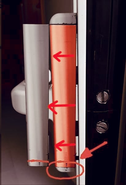 La manilla de la puerta de aluminio se ha aflojado por el uso y necesito acceder a los tornillos (no visibles) para poder apretarlos. Se trata de una manilla metálica antigua con unas tapas superior e inferior que no sé cómo quitar. Por favor, ¿alguien me puede ayudar?