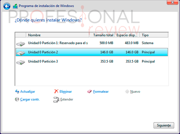 De aquí SELECCIONAS la de 80 Gb (que te mostrará un poco menos que 80000) que acabaste de crear y le das en Siguiente y la instalación comensará ese proceso, instalando W10.