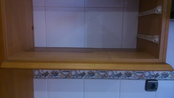 Tengo este hueco para poner el microondas. Quería reforzar la repisa porque con el tiempo va a ceder la madera por el peso. Se me han ocurrido dos opciones: