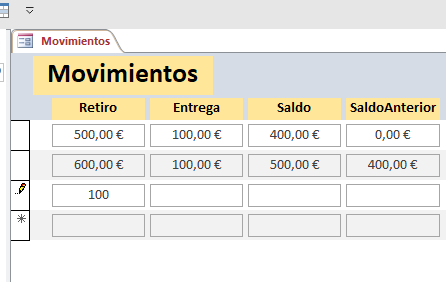 Como verán el saldo pasa a la nueva fila como saldo anterior