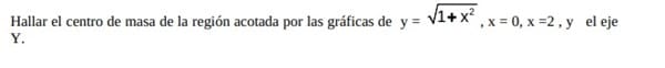 Hallar el centro de masa de la región acotada por las gráficas de y=