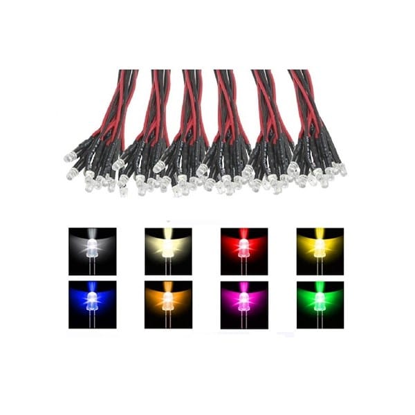 - LED 3mm Blanco con cable y resistencia instalada F070 MDT Models.