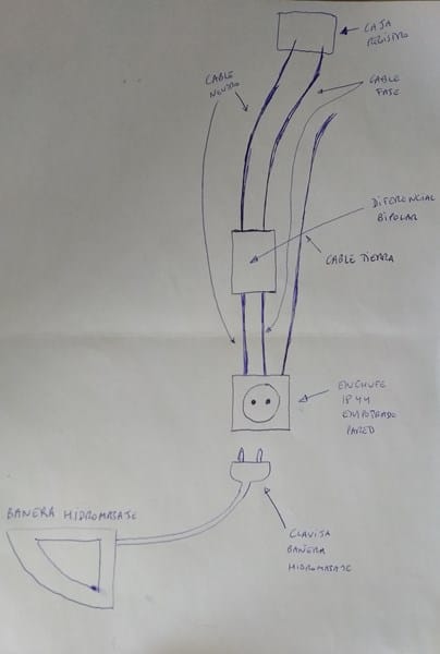 Buenos días estoy intentando instalar bañera de hidromasaje, me indican que tengo que poner un diferencia de alta sensibilidad. Adjunto os remito esquema eléctrico de instalación, ¿la puedo instalar de esa manera para evitar que nos podamos electrocutar en la bañera?. No tengo formación eléctrica por tanto y por favor las explicaciones deben ser sencillitas, porque sino no lo entiendo.