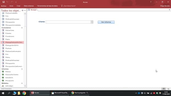 Private Sub CmdAbrirInforme_Click() DoCmd.OpenReport "IFacturasPorClientes", acPreview, "[CodigoCliente]='" & Me.CodigoCliente & "'" DoCmd.Close acForm, Me.Name End Sub