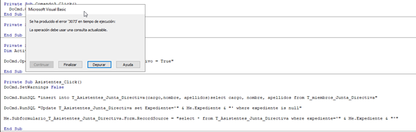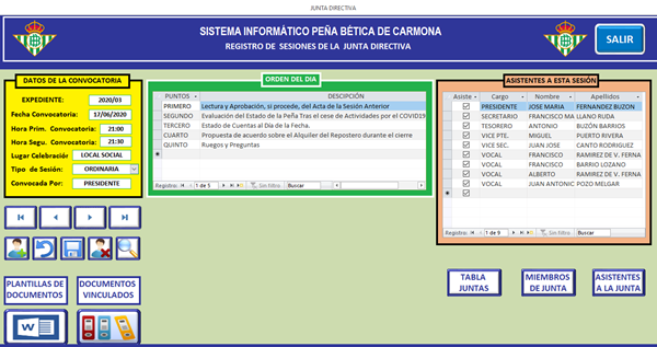 Lo que pretendo hacer es que en el subformulario ASISTENTES A ESTE SESIÓN, para evitar tener que escribir los datos en cada registro, aparezcan todas las personas que componen La Junta Directiva y que el usuario marque o desmarque la casilla de verificación en función de la persona asistes o no y la propiedad "Visible = True".