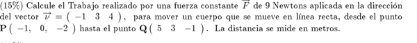 Sistema de fuerzas , calcule el trabajo realizado por por una fuerza constante f de 9N