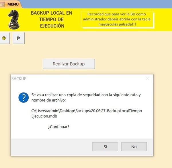 Ya se que el menú de access da opción a que hagas una copia de seguridad de la base de datos. Pero, ¿se puede hacer que automáticamente haga la copia de seguridad al cerrar la base de datos, o con un evento en un botón?
