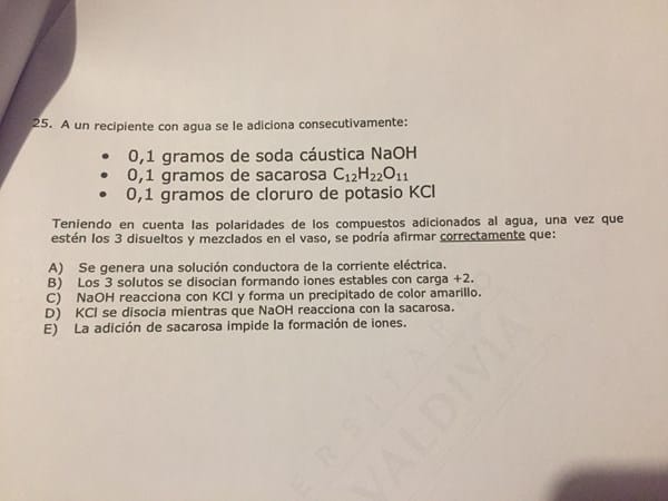 QuímicaIngeniería IndustrialIngeniería Química Benjamín Cubillos el 20 jun. 20 A un recipiente con agua se le adiciona consecutivamente: A partir de los datos anteriores se podría afirmar correctamente Seguir Siguiendo Dejar de seguir