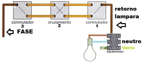Resulta que quería instalar un ventilador de techo en la habitación de matrimonio y así sustituir una lámpara que podía regularse en intensidad desde 3 lugares distintos de la habitación, una a la entrada de la habitación y luego uno a cada lado de la cama, por lo tanto pregunté y me dijeron que necesitaría dos conmutadores y un cruzamientos así como anular la pastilla reguladora de intensidad.