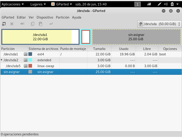Estoy teniendo problemas en aumentar el tamaño del disco virtual en Kali Linux, inicialmente le agregué 25 GB, pero después agregué otros 25 GB a la MV de Virtual Box, por lo que no se permite redimensionar el disco donde se esta ejecutando Kali, hay alguna forma poder redimensionar el disco