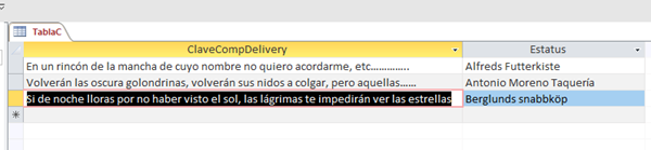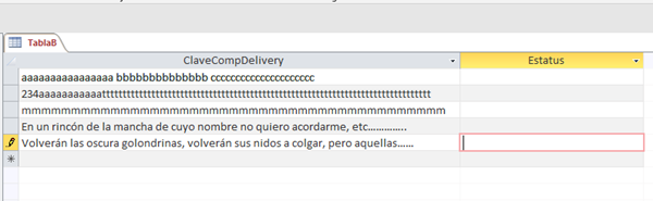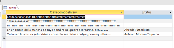Le doy vueltas, a ver si ahora tengo una Tabla B - la cual es mi tabla nueva con el campo ClaveCompDelivery (Tipo Long Text).