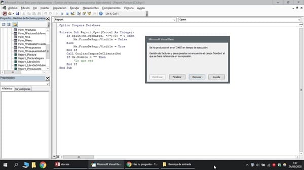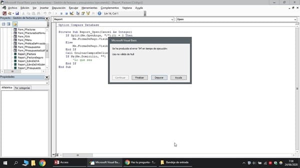 Tengo un problema cuando hago referencia a un campo, desde VBA, ya que me dice que no encuentra el campo, o me da error de uso no válido de Null. Es decir:
