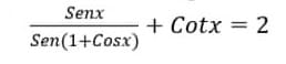 $$\begin{align}&\frac{senx}{sen(1+cosx)}+cotx = 2\\&\frac{senx}{sen(1+cosx)}+\frac{cosx}{senx} = 2\\&\text{Usando el seno de la suma...}\\&\frac{senx}{sen(1)\cos(cosx)+sen(cosx)cosx}+\frac{cosx}{senx} = 2\\&\text{Y hasta acá llegué...}\end{align}$$Solo veo 2 posibilidades: