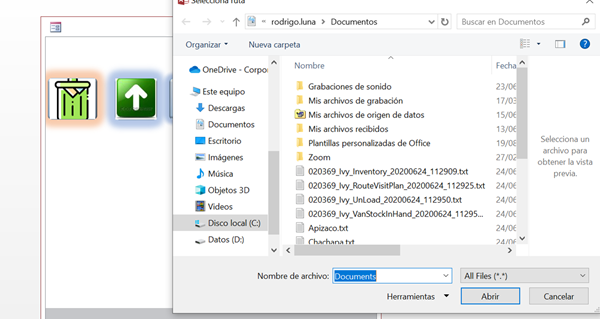 Código para anexar un txt a una tabla al abrir el cuadro de dialogo en access