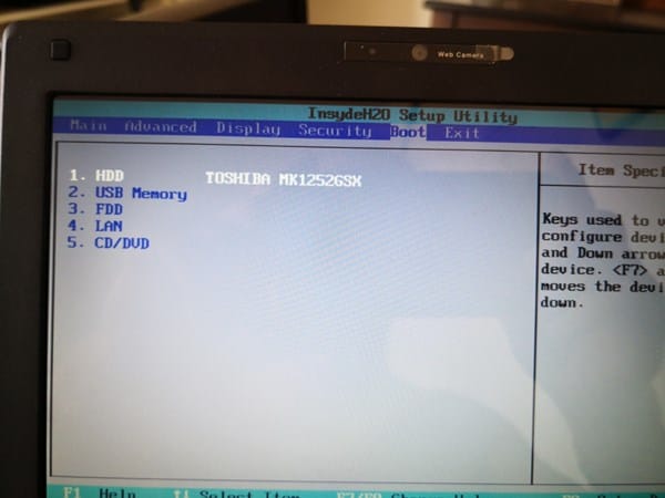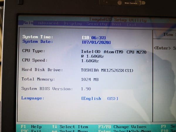 Toshiba NB100 no arranca. Enciendo, pongo contraseña, y me lleva a las bios.