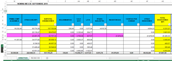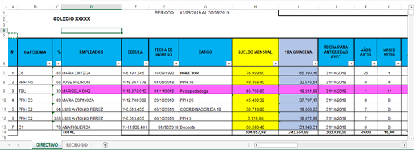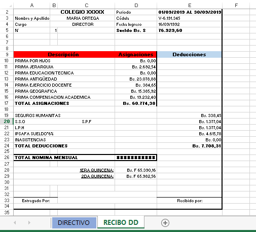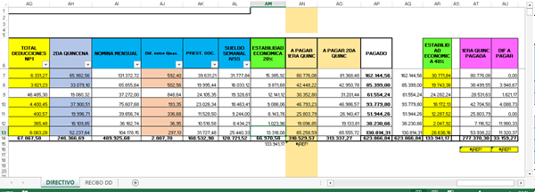 Me pueden ayudar, necesito que se generen del archivo excel los recibos de pagos del personal y que se me guarden automáticamente en pdf cada uno de los trabajadores por separado en alguna carpeta que le pueda colocar una ruta, tengo la hoja de datos donde tengo los cálculos (en imagenes esta en 4 partes), y en la siguiente hoja tengo el recibo de pago.
