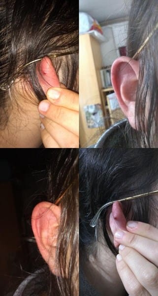 Perforación aún no sana y parece que tuviese sangre dentro