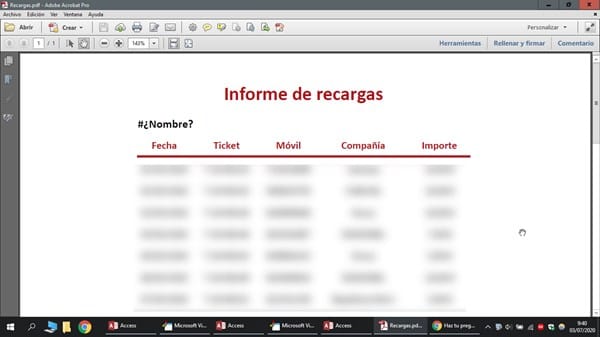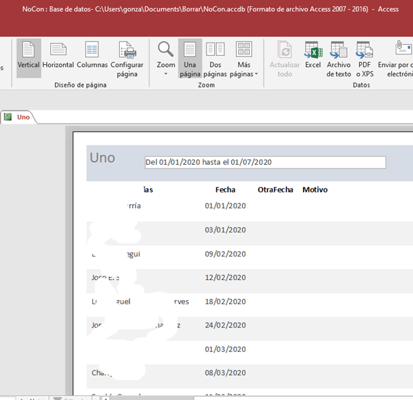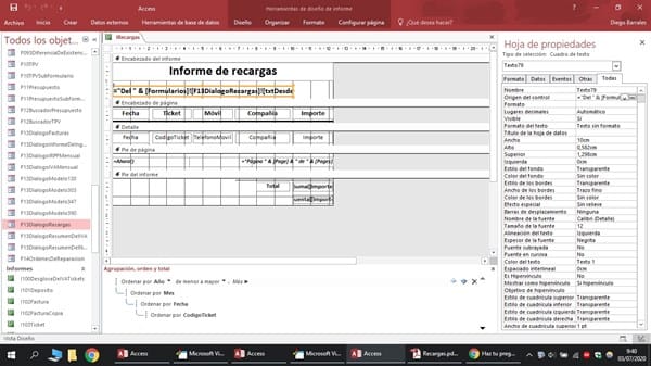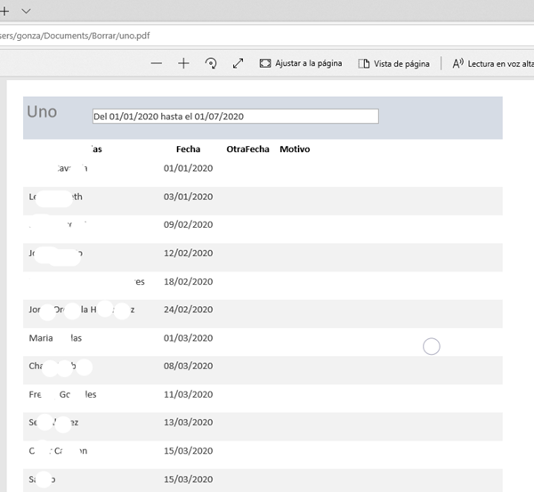 Me acabo de dar cuenta, al imprimir un informe que filtro por fechas, que el campo calculado con el rango de fechas que tengo en el informe, me da error cuando lo imprimo en PDF.