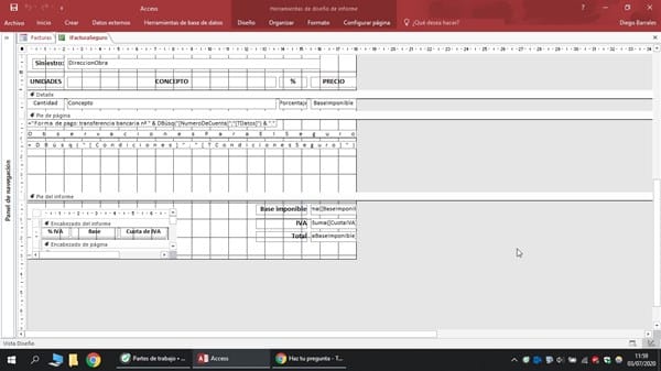 Tengo un informe para imprimir las facturas. En el pie de página, hay varios campos, que el usuario elegir si mostrar o no desde el formulario cuando imprime el informe. Son el número de cuenta y un campo de observaciones. Además, hay otro campo que está siempre, que es acerca de la política de privacidad. Por lo tanto, este pie de página no tiene un alto específico, porque varía de si aparecen o no los campos de número de cuenta y el de observaciones, además de si el usuario decide cambiar la política de privacidad (a través de otro formulario creado para eso).