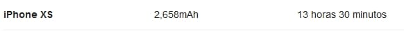 ¿Cuántas horas dura la batería del iphone XS?