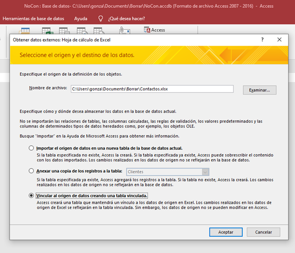 Tengo una base de datos access 2007 para el personal de la empresa con varios campos. Hemos tenido que añadir dos campos nuevos a la tabla de personal "persona de contacto" y "teléfono" por si hay que avisar a algún familiar en caso de urgencia. Estos datos los tengo parte en una tabla de excel y podria meterlos a mano pero es que son 230 registros, he intentado importar los datos a la base pero algo se me escapa.