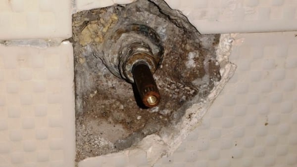 Os adjunto una foto de la llave de paso de la cocina de mi vivienda. Para poneros en situación, es un piso de 40 años con azulejos de cerámica, que es lo que se montaba en la época. La llave se averió completamente produciendo incluso filtraciones al vecino. Como podéis ver, he tenido que picar alrededor para liberarla. Mi pregunta es: