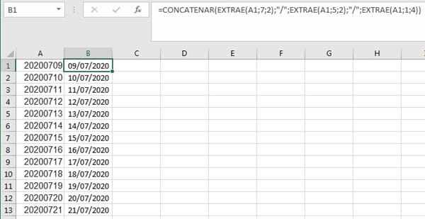 Tengo una hoja de excel que creo a raiz de un archivo de texto. El problema es que las fechas vienen almacenadas en formato General de este modo: 20200709
