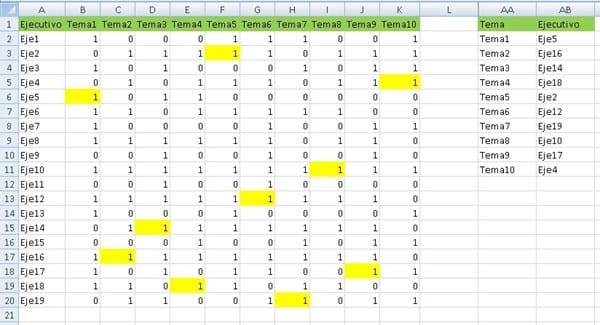 Necesito una macro o forma de elegir un ejecutivo de forma aleatoria para cada tema, la dificultad que tengo es que solo debe seleccionar entre los que si aprobaron la capacitaron. En este ejemplo puse un numero 1 a los que si estan certificados y 0 a los que no.
